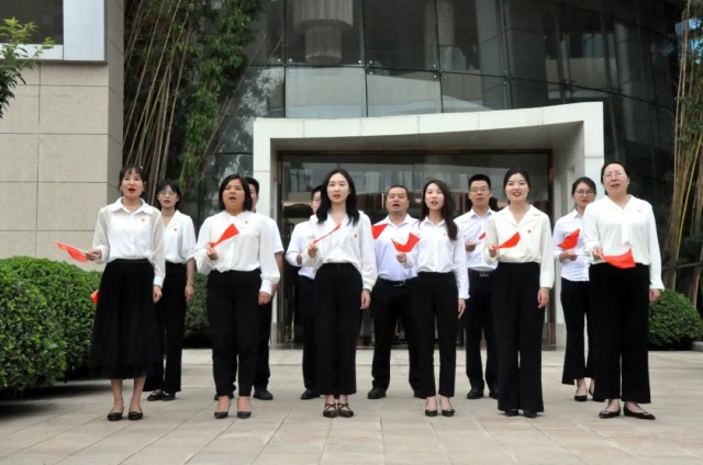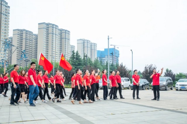 觀摩交流會(huì)結(jié)束后,參加活動(dòng)的全體黨員齊聚炎黃科技園親水平臺(tái),參加洛龍高新區(qū)“歌聲嘹亮 禮贊山河 政企聯(lián)唱 齊頌百年”獻(xiàn)禮建黨百年華誕主題活動(dòng)合拍視頻的錄制。