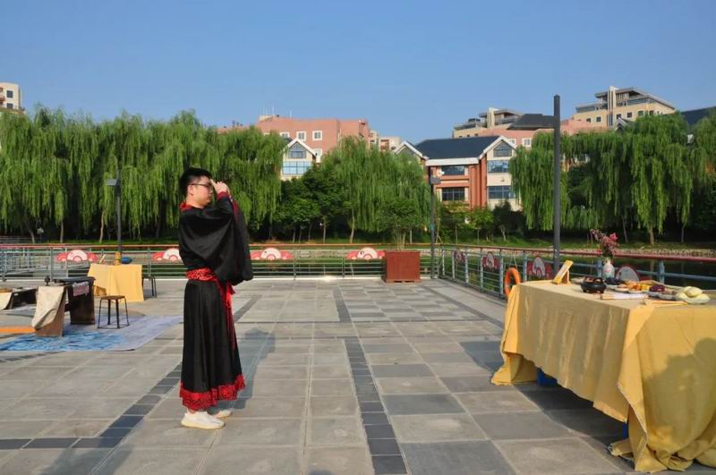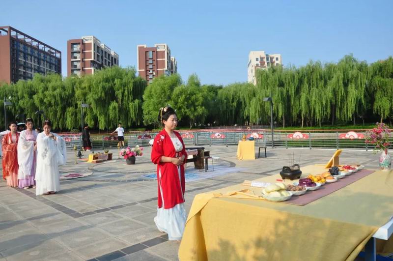 今天是8月4日,農(nóng)歷七月初七乞巧節(jié)。下午17時(shí)許,中國華僑國際文化交流基地炎黃科技園的湖心平臺上格外熱鬧,一場別開生面的乞巧節(jié)傳統(tǒng)文化大集活動正在這里舉行。