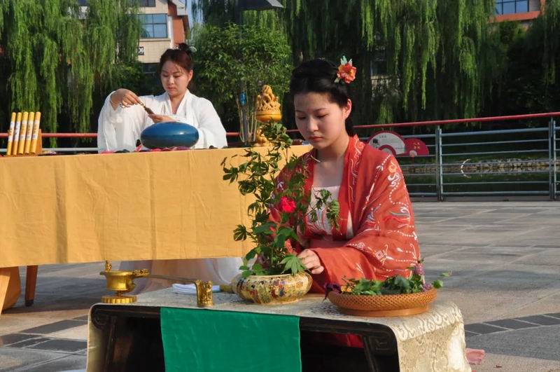 祭拜儀式結(jié)束后,傳統(tǒng)文化愛好者在古樸深沉、韻味悠長的古琴演奏中展示了制香、茶藝、古法造紙、香染等非遺文化和傳統(tǒng)技藝。